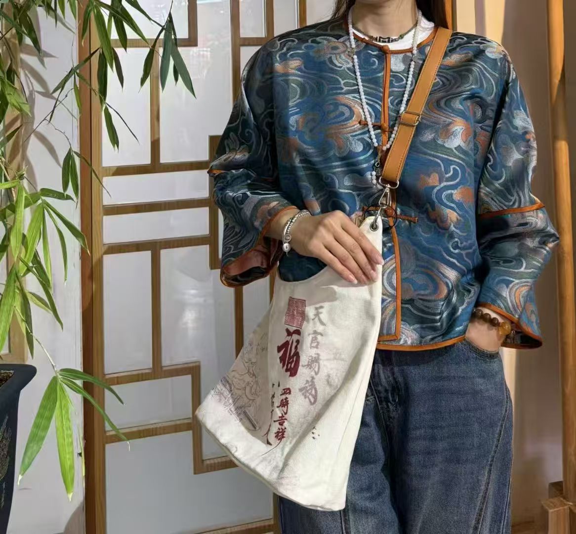 This canvas tote carries the ancient wisdom and blessings of China's sacred Taoist mountain, Maoshan. Its design is inspired by the revered "Wealth Talisman" of the Maoshan Shangqing Sect, blending profound cultural heritage with modern daily use.